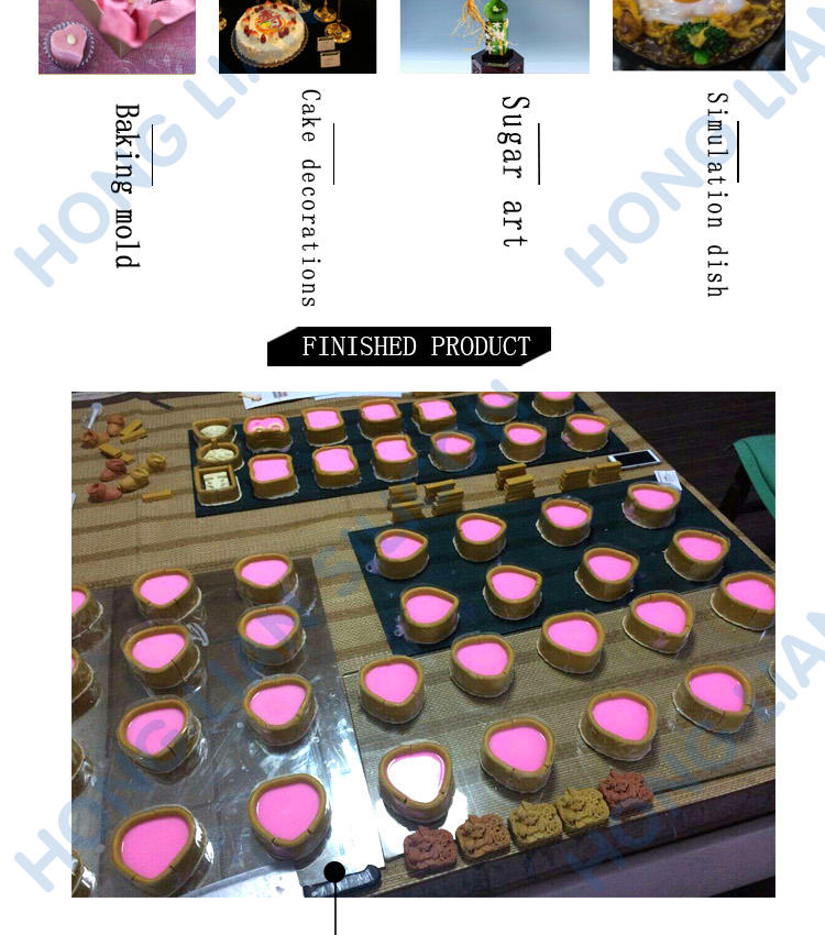 Widely used in casting or injection molding products, such as: cake molds, chocolate molds, candy molds.