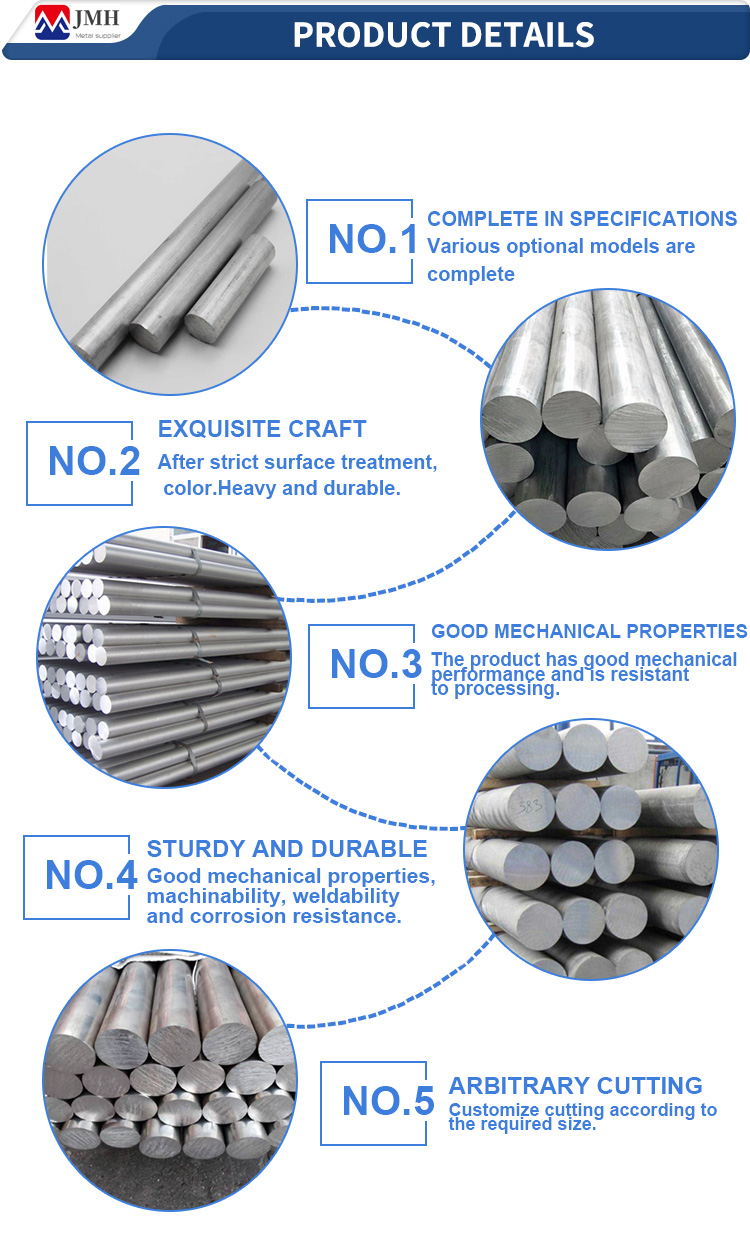 Price aluminum rod 7050 7075 6061 6063 6082 5083 2024 T6 aluminum rod in stock