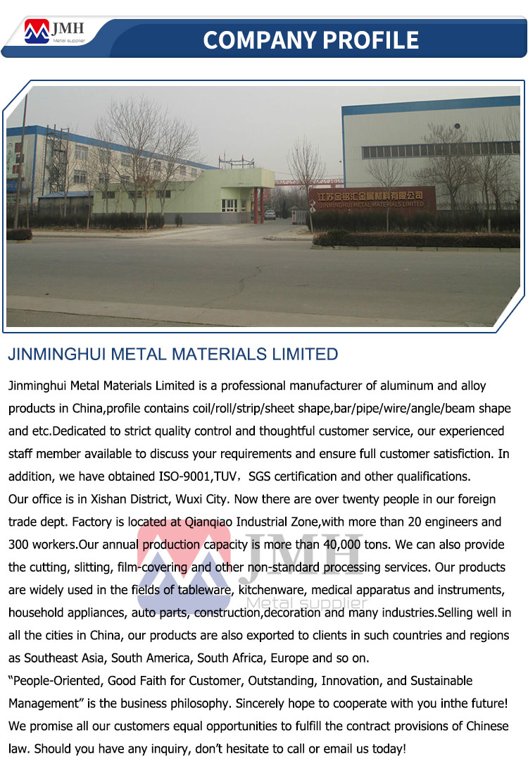 grade | 1000, 2000, 3000, 4000, 5000, 6000 series a) 1000 series: 1050, 1060, 1070, 1100, 1200, 1235, etc. b) 2000 series: 2014, 2024, etc. c) 3000 series: 3003, 3004, 3005, 3104, 3105, 3A21, etc. d) 4000 series: 4045, 4047, 4343, etc. e) 5000 series: 5005, 5052, 5083, 5086, 5154, 5182, 5251, 5454, 5754, 5A06, etc. f) 6000 series: 6061, 6063, 6082, 6A02, etc. |