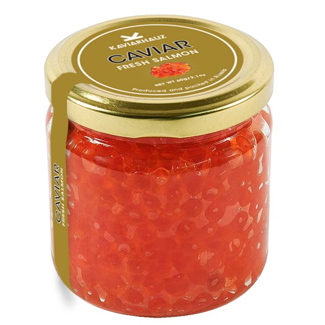 Salmon Roe - Spherika 50g Glass Jar 1oz Salmon Roe Red Caviar Gluten Free GMO Roeless Seafood Keta Ikura Wild Salmon