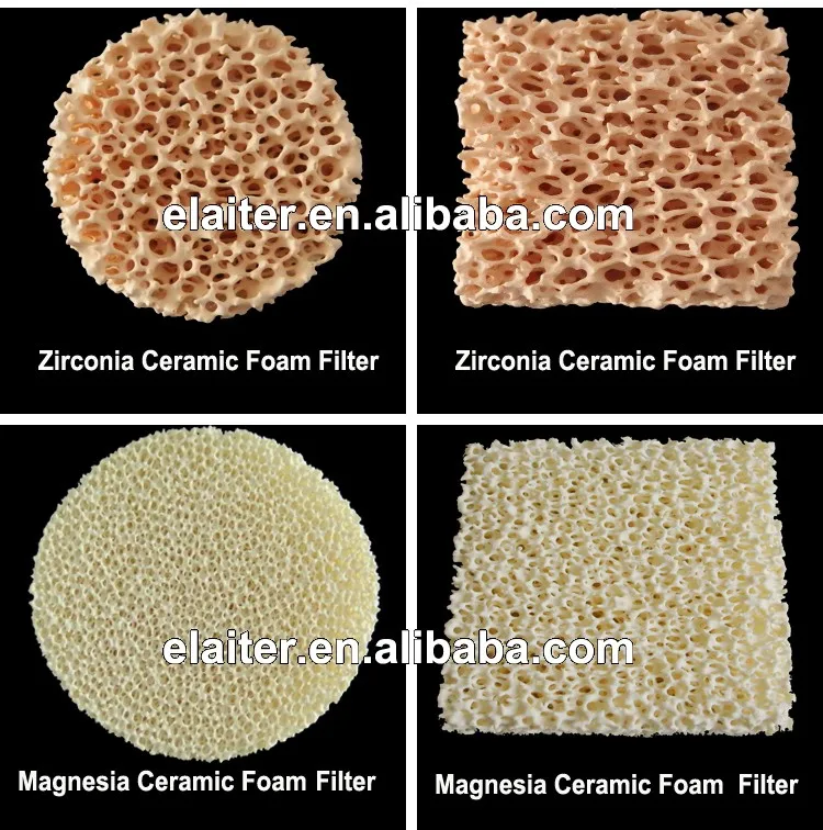 We have developed four types of ceramic foam filters: alumina ceramic foam filter, silicon carbide ceramic foam filter, zirconia ceramic foam filter and magnesia ceramic foam filter.