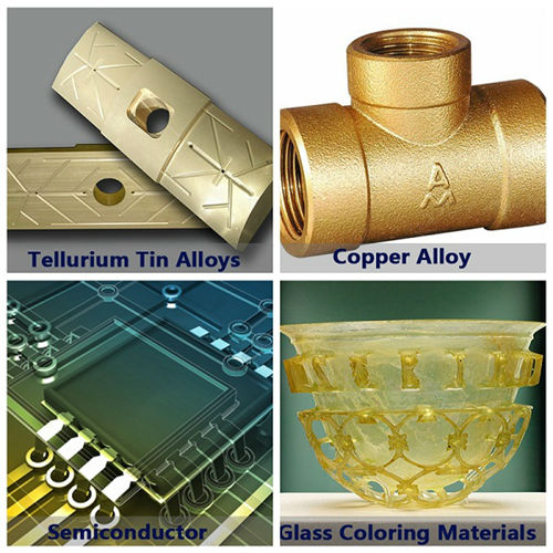 2. Tellurium is widely used in thermal analysis sample cups, rubber joints, TDEC, and casting coatings. Semiconductor grade for cooling and semi-compound industries.