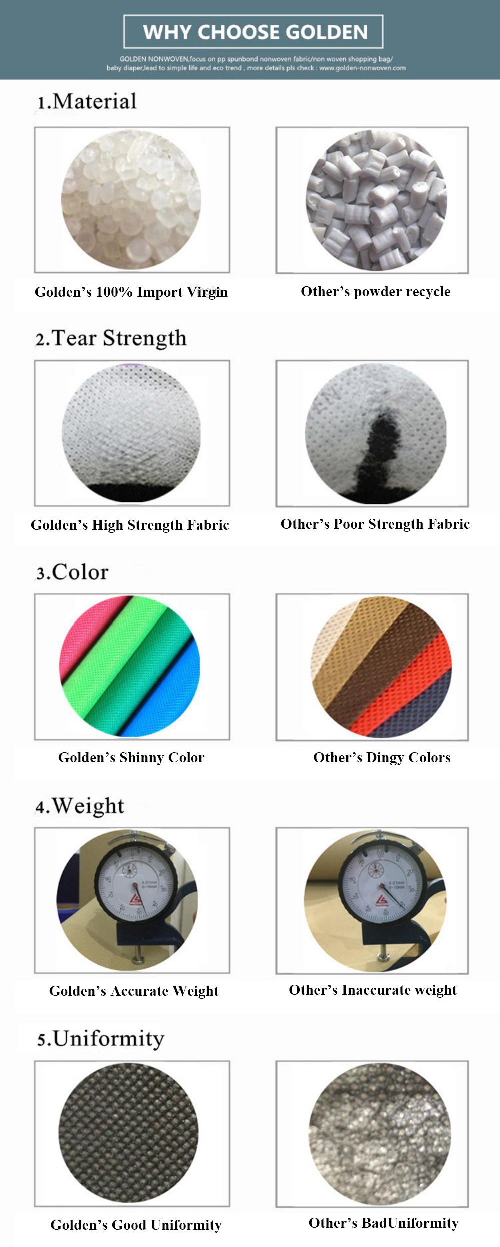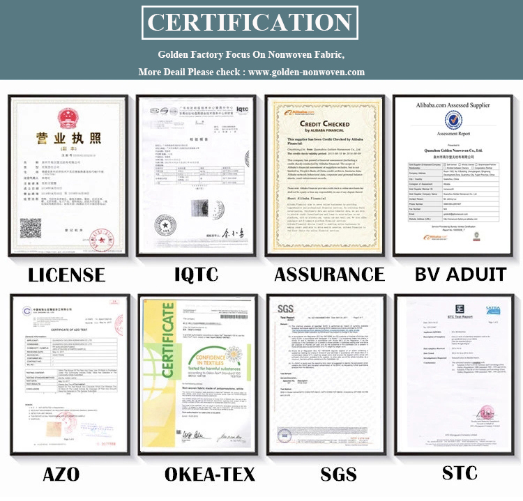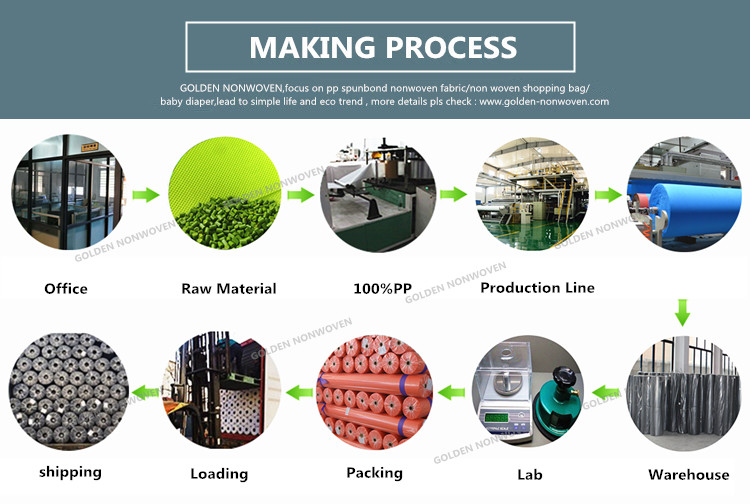 GoldenHas 20 non-woven production lines, three factories, with an annual output of at least 8,000 tonsAnnual output.We employ more than 500 workers and have a workshop of 90,000 square meters.Our advantage: Quality is our culture! ! ! Direct factory, 12 years foreign trade business, competitive price, good quality and best service.12 years of experience and advanced production technology,We are ready to help you grow your nonwovens business.Now,GOLDEN is exported to more than 30 countries and regions including the United States and the United StatesEuropean Union, Australia and Asia etc.Welcome your visit and inquiry.