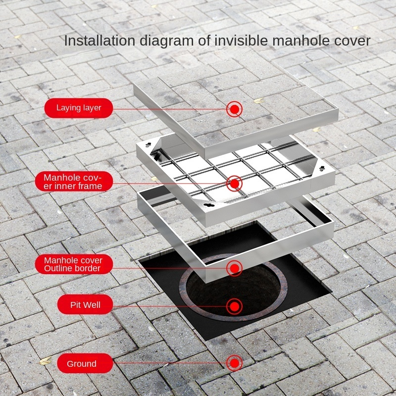 Stainless Steel Invisible Square Manhole Cover with Grille