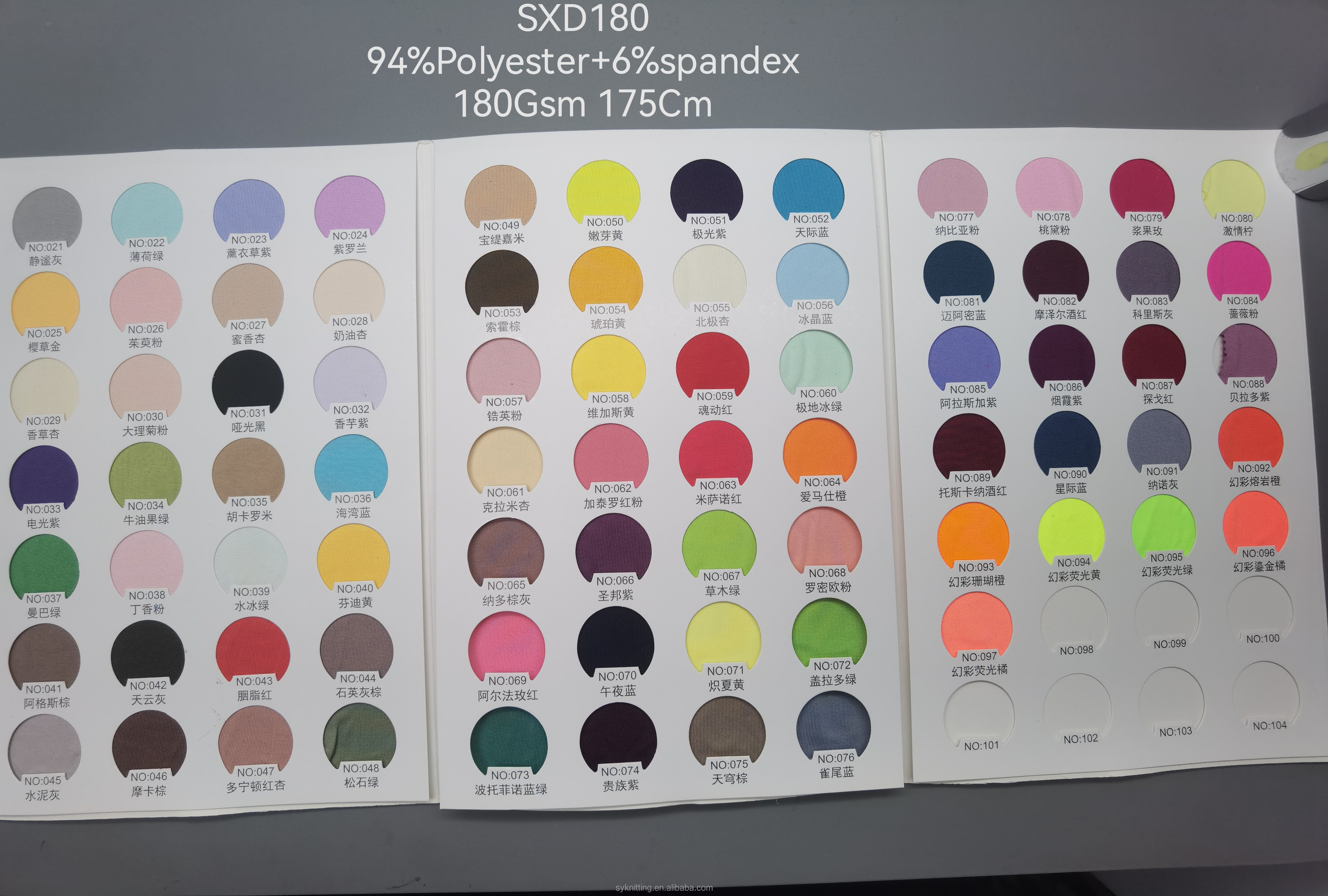 | type: | Stretch fabrics | product name: | 180gsm Knit 94 Polyester 6 Spandex Stretch T-Shirt Fabric |