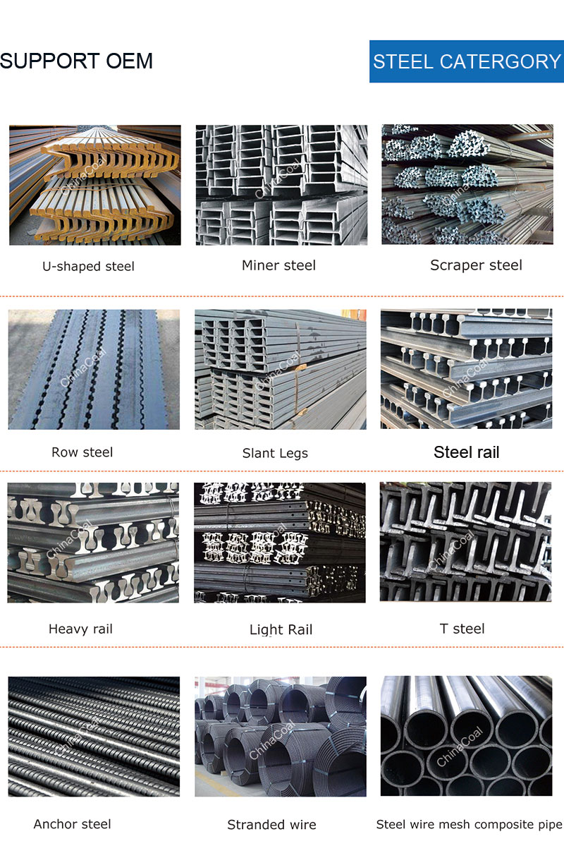 1) Light rail: 6kg/m, 9kg/m, 12kg/m, 15kg/m, 18kg/m, 22kg/m, 24k/mg, 30kg/m