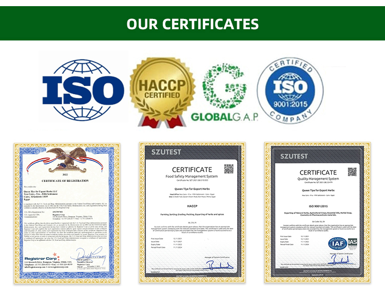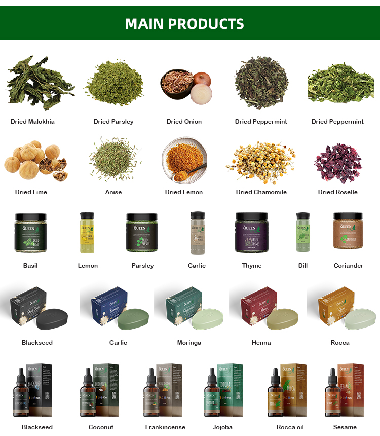 - Queen Tiye, Egypt has its own farm and factory, and adopts major quality systems such as ISO 9001, Global GAP, HACCP, etc.