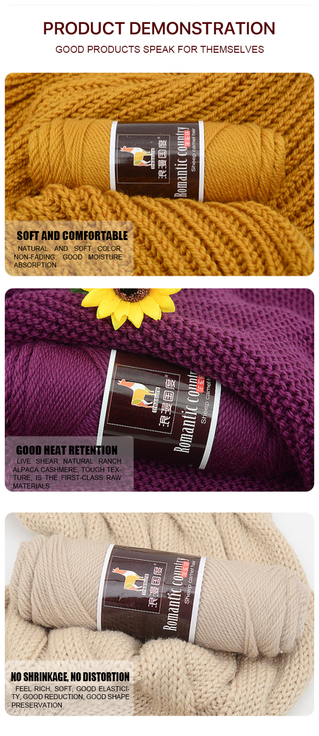 Factory Price Alpaca Camel Hair Knitted Scarf Women's Hand Knitted Hat Medium Warm Wool Yarn 100 Grams Each