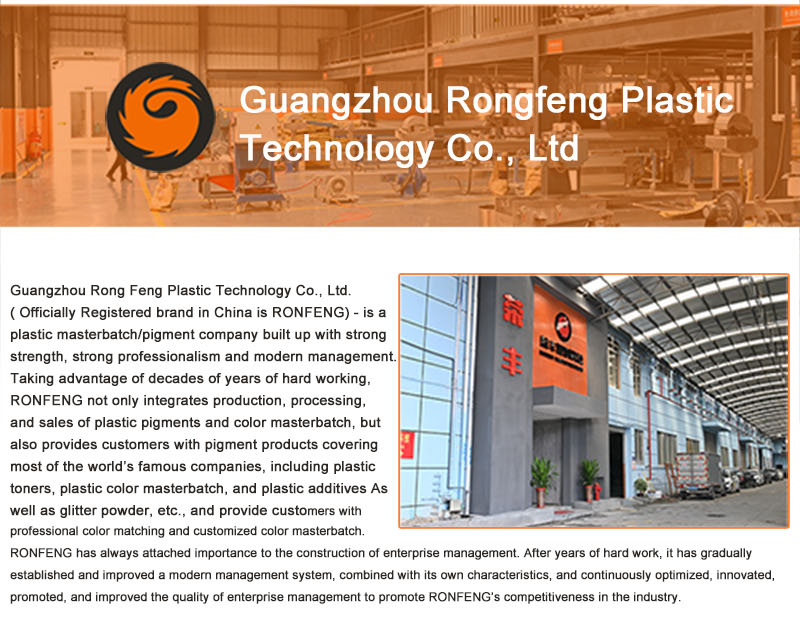 The masterbatch produced by Rongfeng Company adopts a unique process. It has good coloring ability and meets environmental protection requirements.