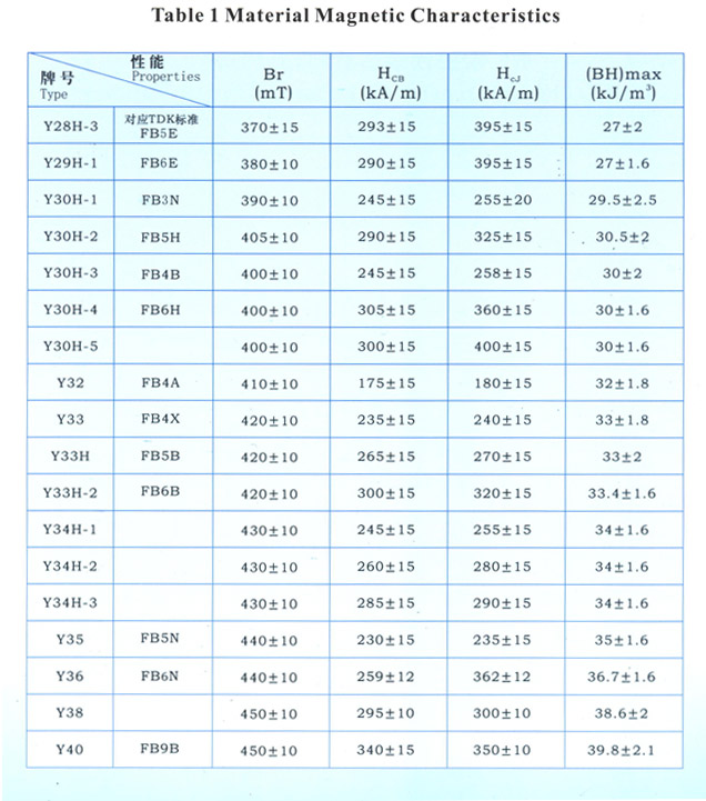Y30-Y46 grade ferrite magnet