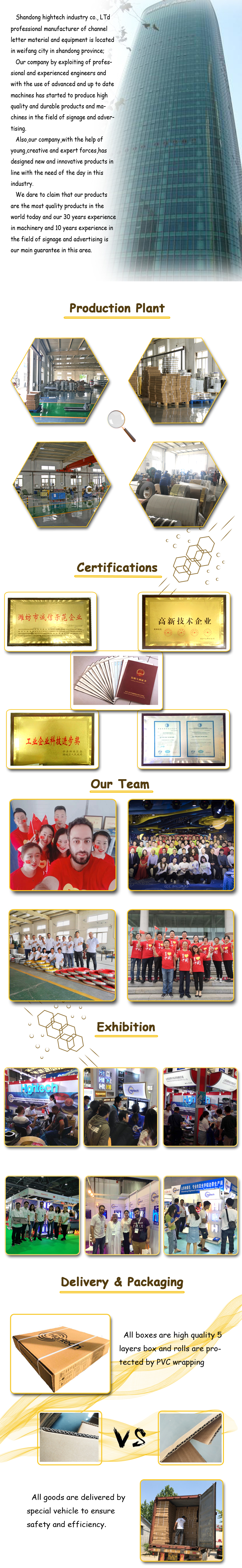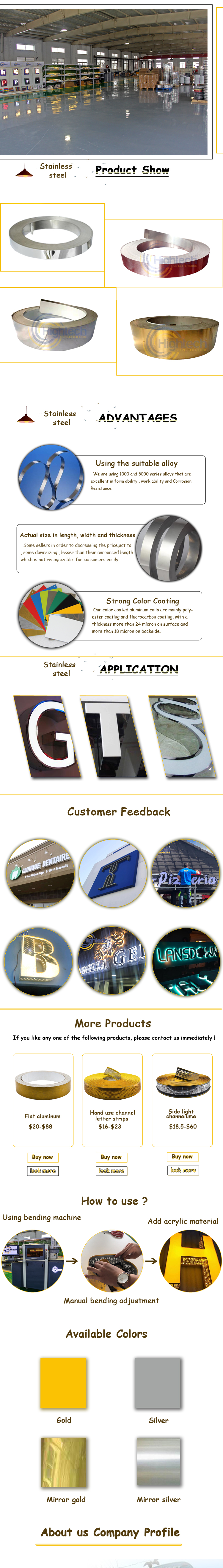 delivery time: 5-7 days product name: Aluminum channel letter coils for outdoor signage application: logo decoration shape: Unit (50m/100m) Surface treatment: coating Aluminum (minimum): 99.82% Coating Type: polyethylene Elongation (≥ %): 15%-40% width: 3.5inch, 4.3inch, 5.3inch, accept OEM brand:..... -