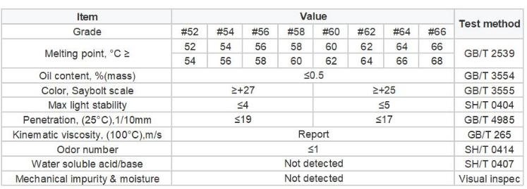 Oil content %: 0.5 pack: 25kg per bag model: 58# Packaging Details: 25 kg, five small bags in one big bag Melting point: 77-82 Supply capacity: 2000 metric tons per month Melting point: 56-58 Penetration (25°C, 100g): 18 appearance: solid whiteboard form: hard sample: available grade: 56#...... -