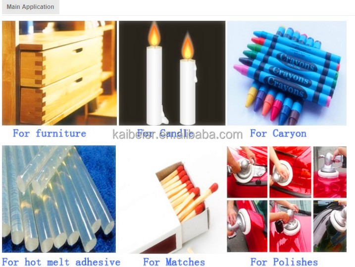 Fully refined and semi-refined paraffin waxes are widely used, mainly used as components and packaging materials for candles, cardboard, plastic, rubber and other commodities (such as wax paper, crayons, candles, carbon paper), baking containers with seasoning, for electrical components, Insulating rubber has aging resistance and increased flexibility.