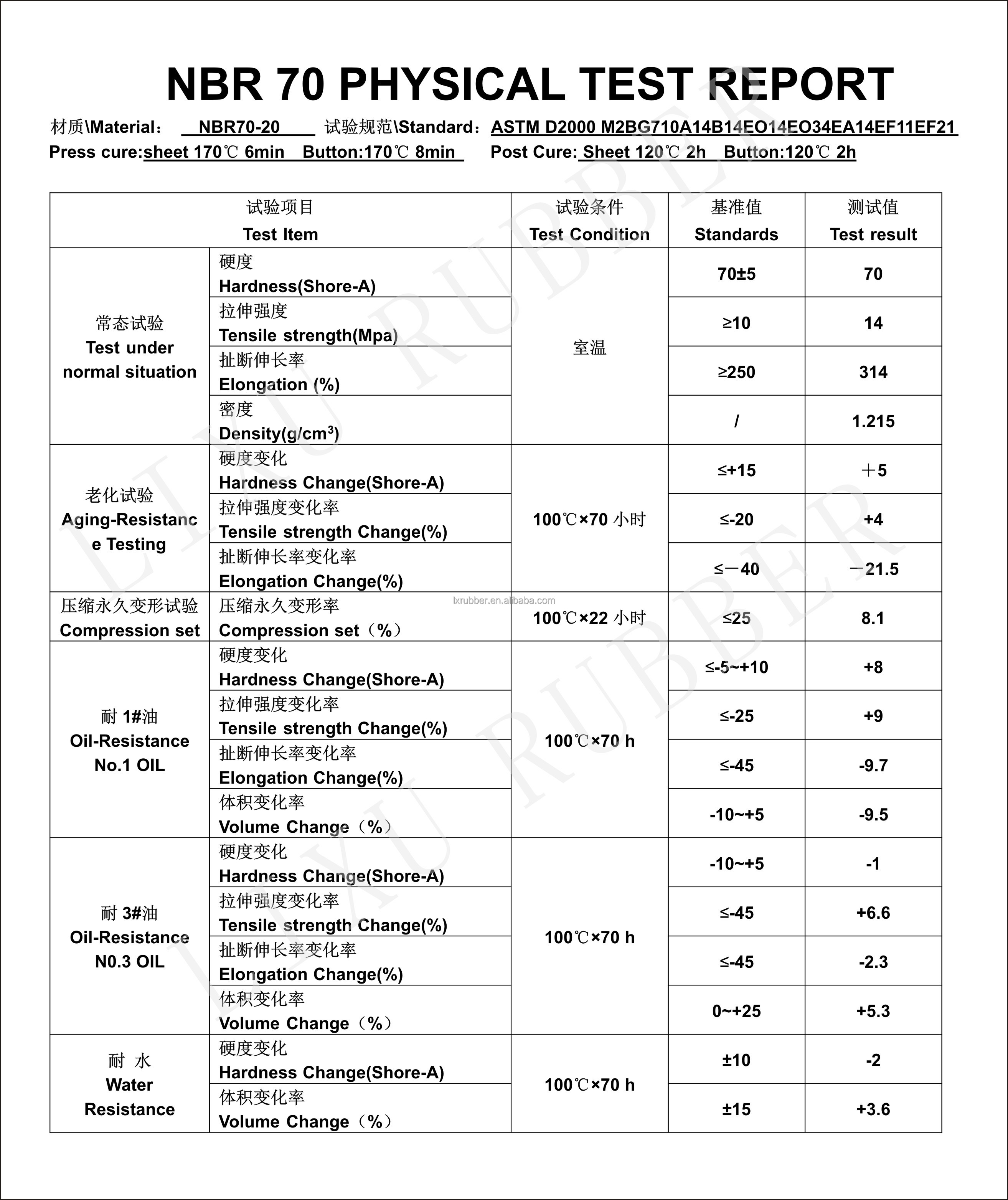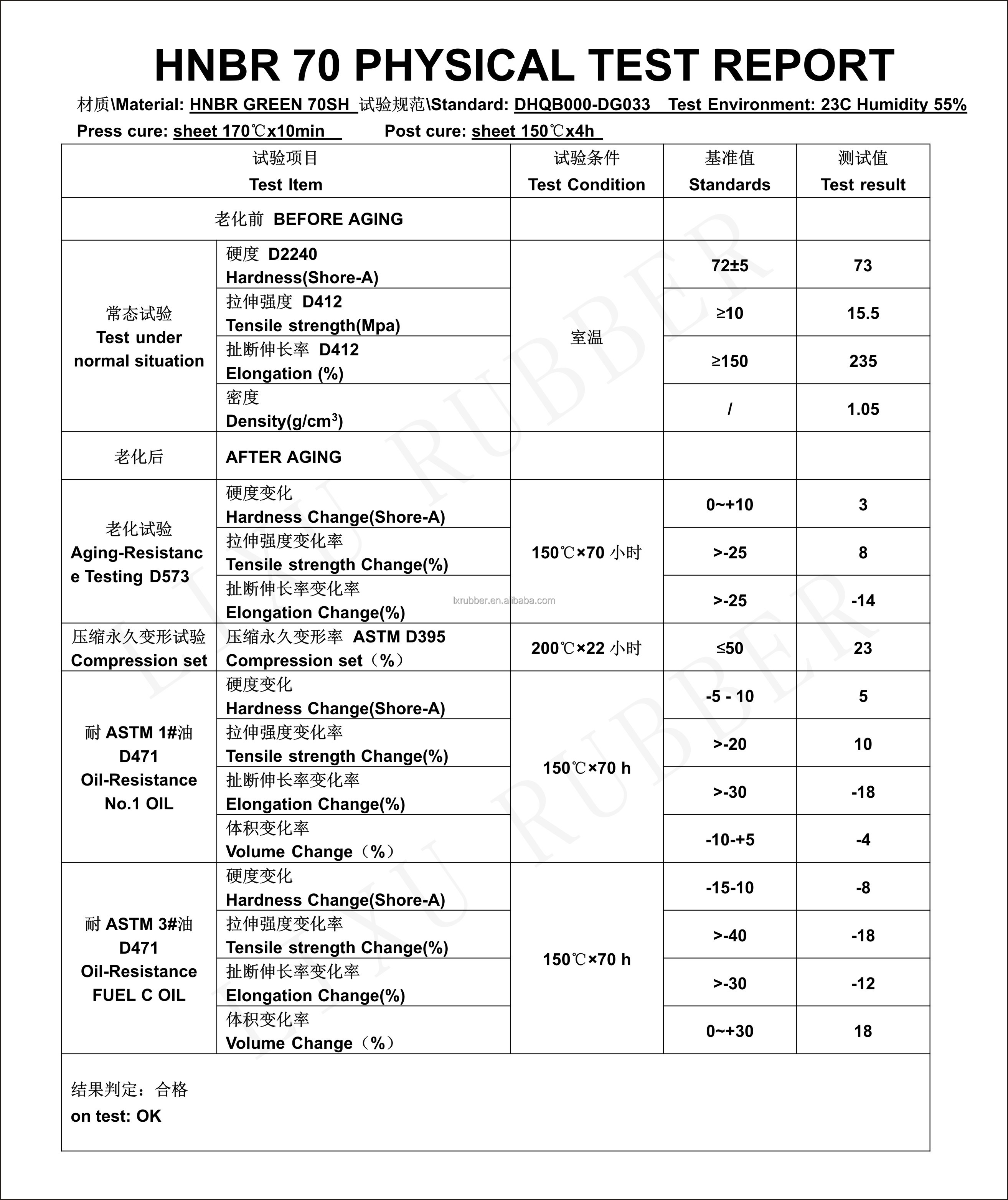 HNBR test data sheet70 O-ring