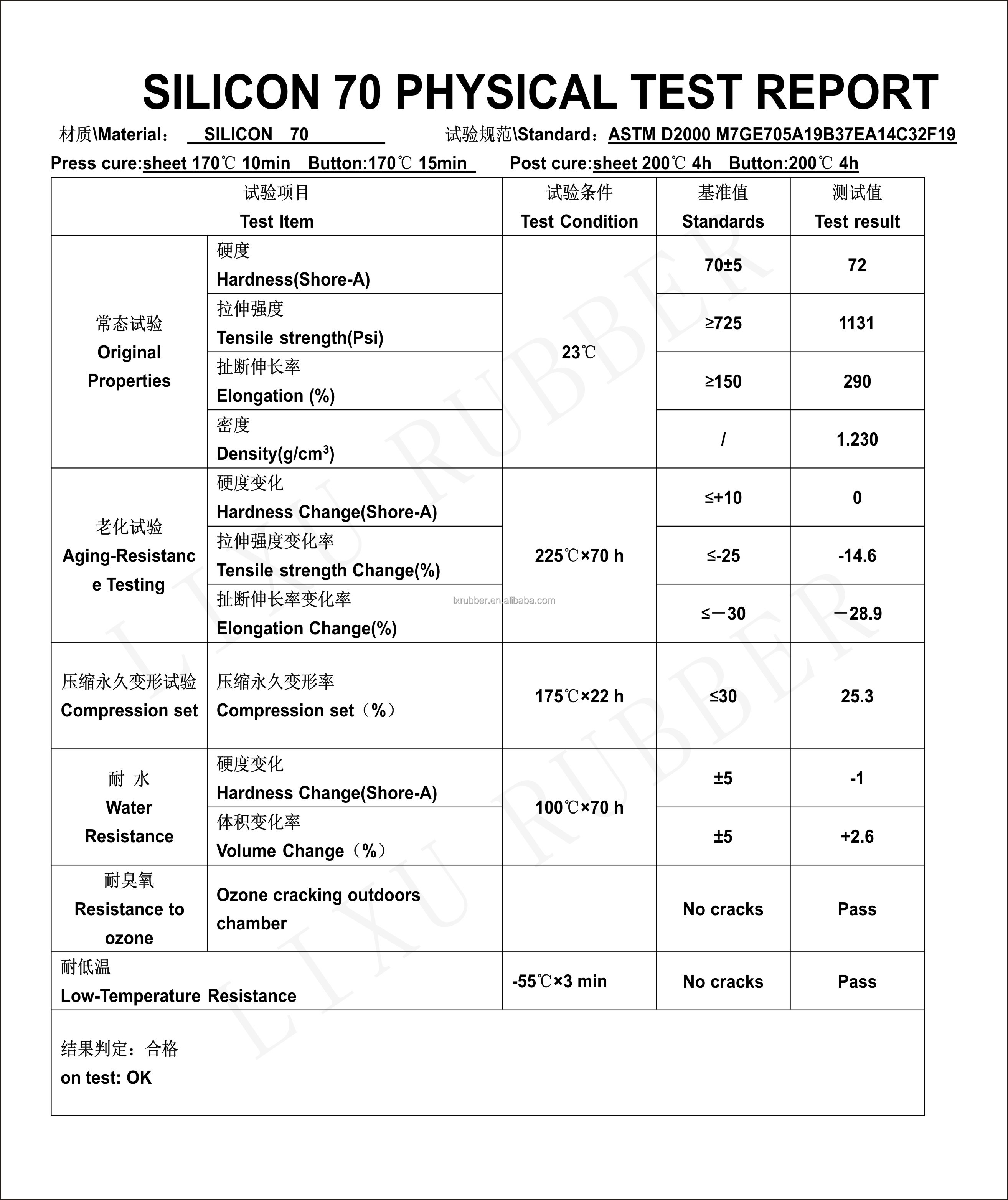 Test data sheetSilicon 70 O-ring
