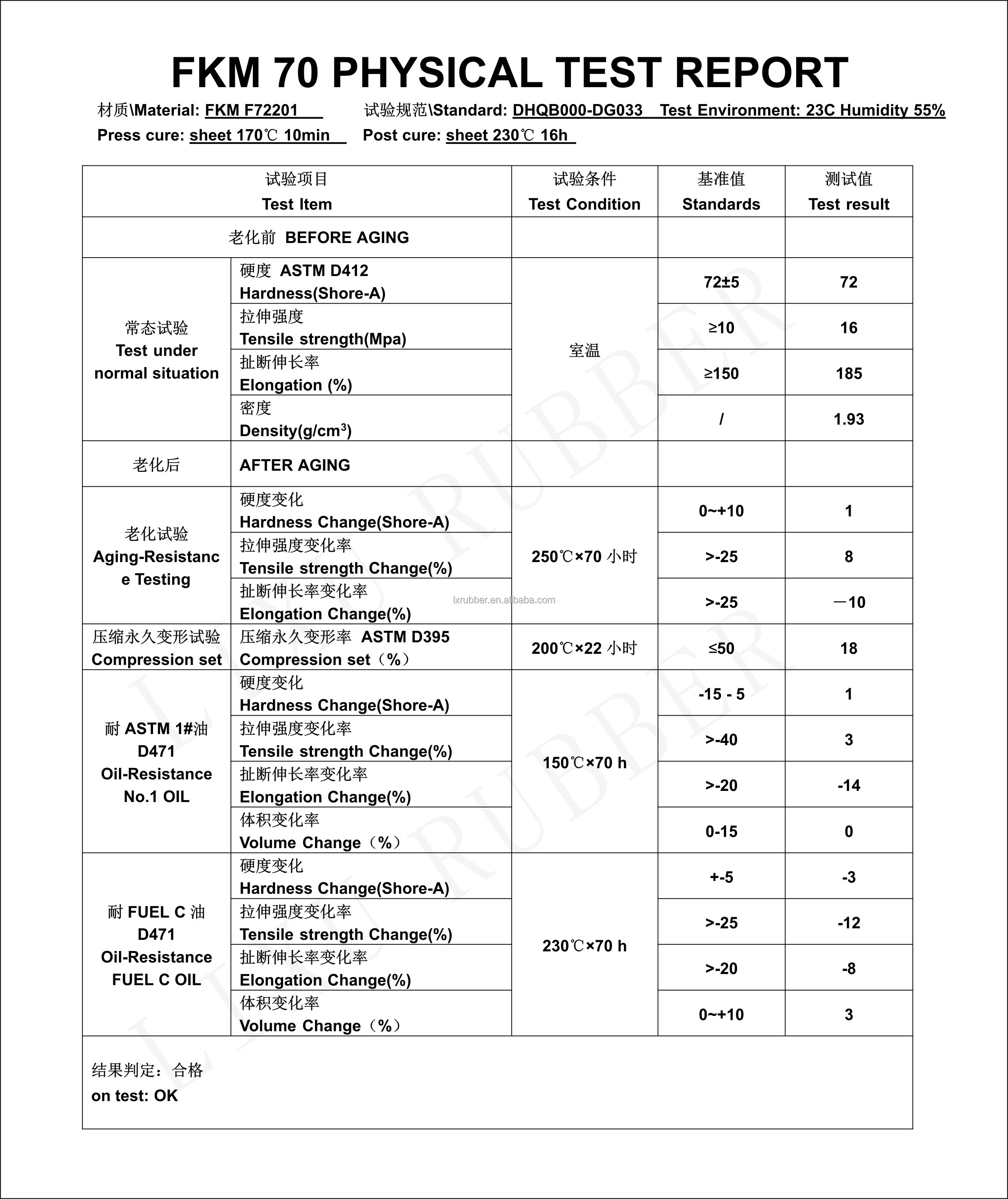 FKM test data sheet70 O-rings