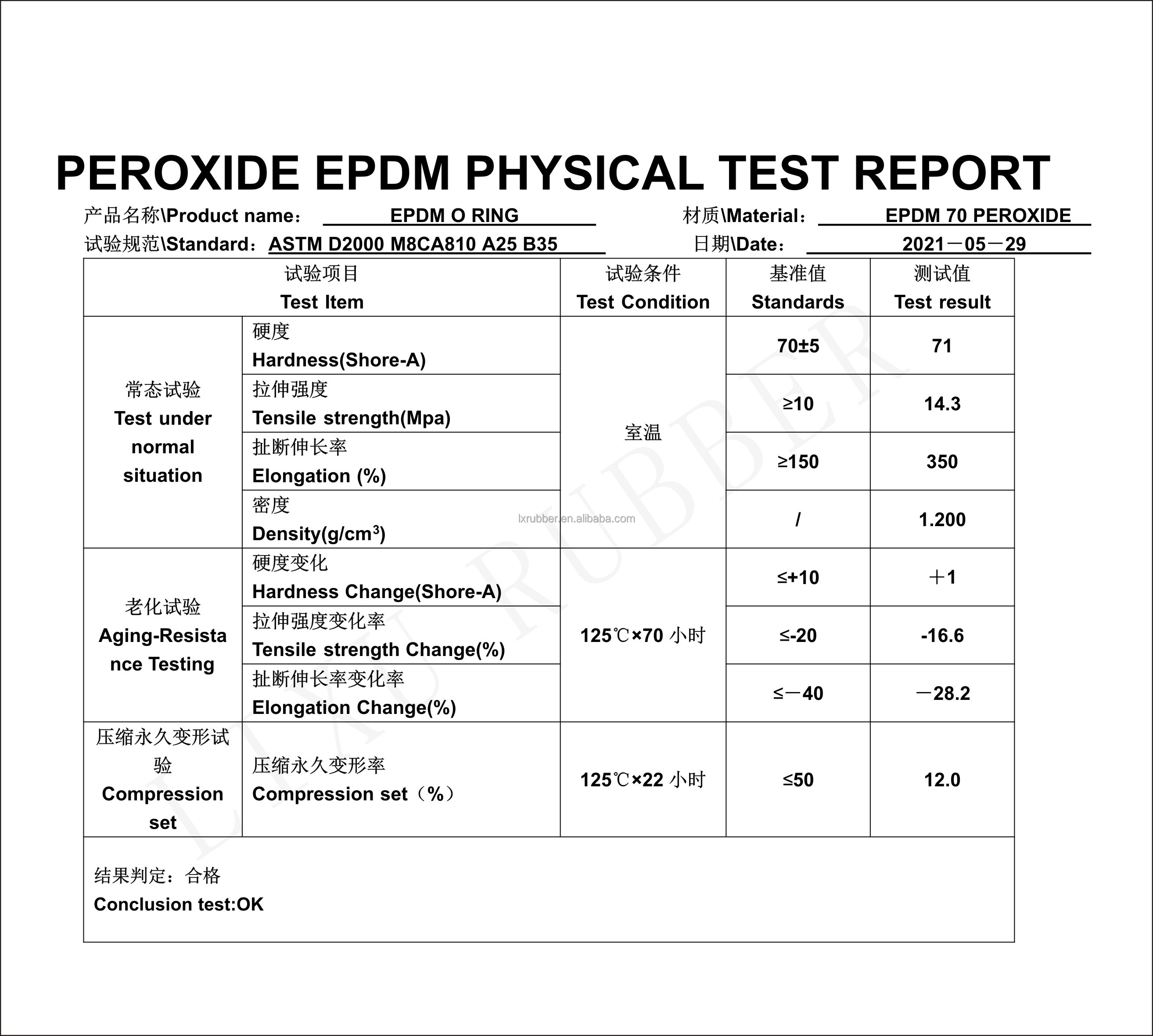 Test data sheetNBR 70 O-ring