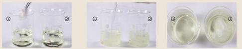 Cup1 Put 100% mulberry silk fiber into an appropriate amount of 84 disinfectant and it will dissolve and disappear.