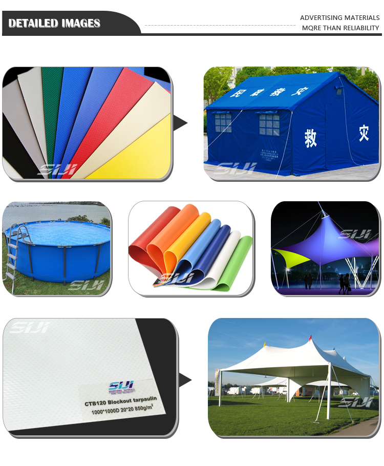 SIJI PVC coated tarpaulin is made of 100% high tenacity polyester yarn. We use superior blade coating technology to ensure the outdoor life of the tarpaulin is more than 3 years! SIJI PVC tarpaulin rolls have high strength, high tensile and tear strength, excellent flexibility, best color fastness!