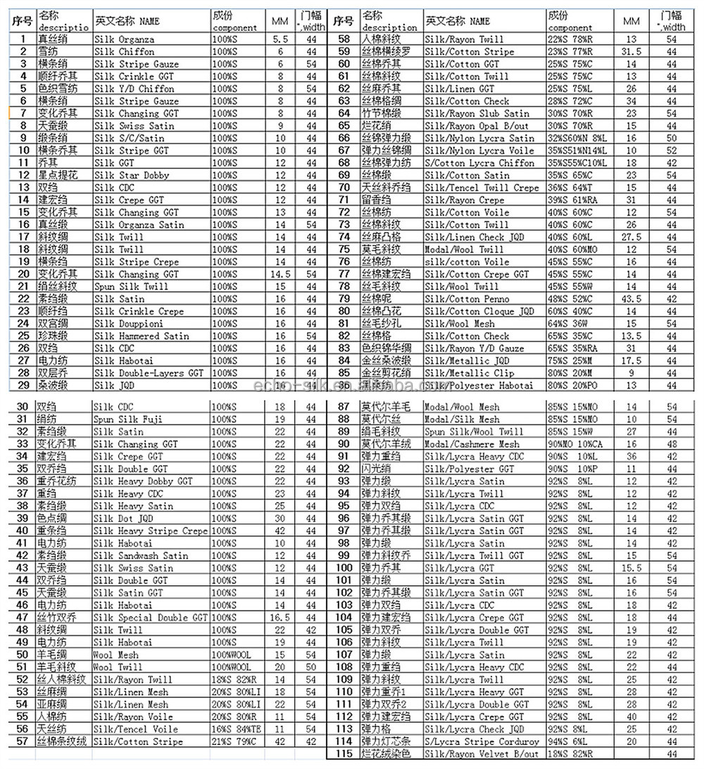 | 3. Various materials for your choice: georgette, chiffon, satin, twill, hatotai silk wrinkle, silk habotai, silk cotton series and other materials, etc., |