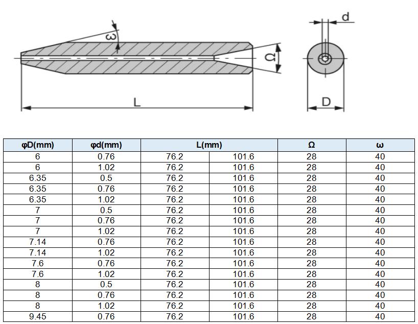 1. Refers to the jet outlet of the high-pressure abrasive water jet machine used as an abrasive nozzle mixed with water. Due to the harsh conditions of its internal jet, the abrasive wear is accelerated after the large grit in the tube, so it is necessary to use a very wear-resistant material. The material of manufacture, the sand pipe structure is very simple and basically consists of two sections, a conical inlet and a columnar outlet. There are slight differences in size due to different uses.