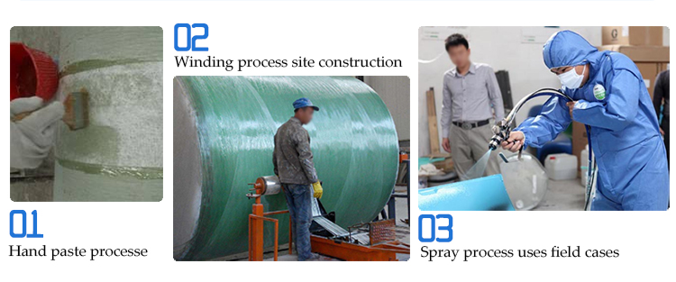 Application display of liquid glass fiber unsaturated polyester resin for FRP pipes and tanks