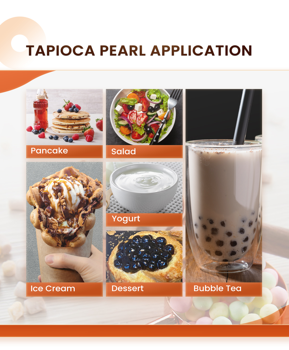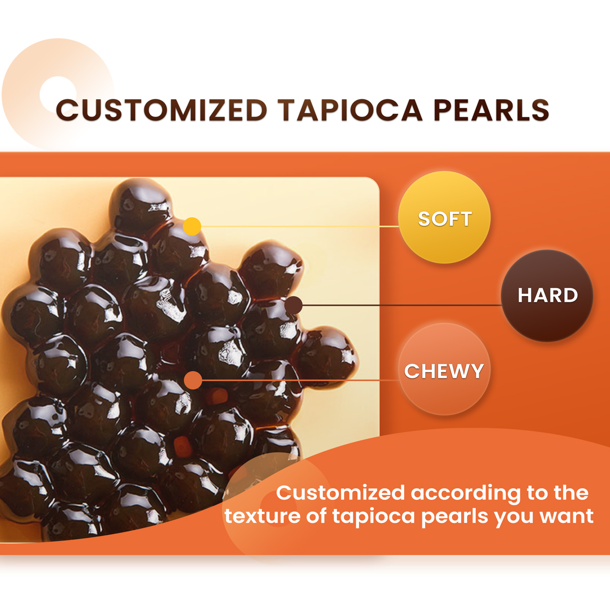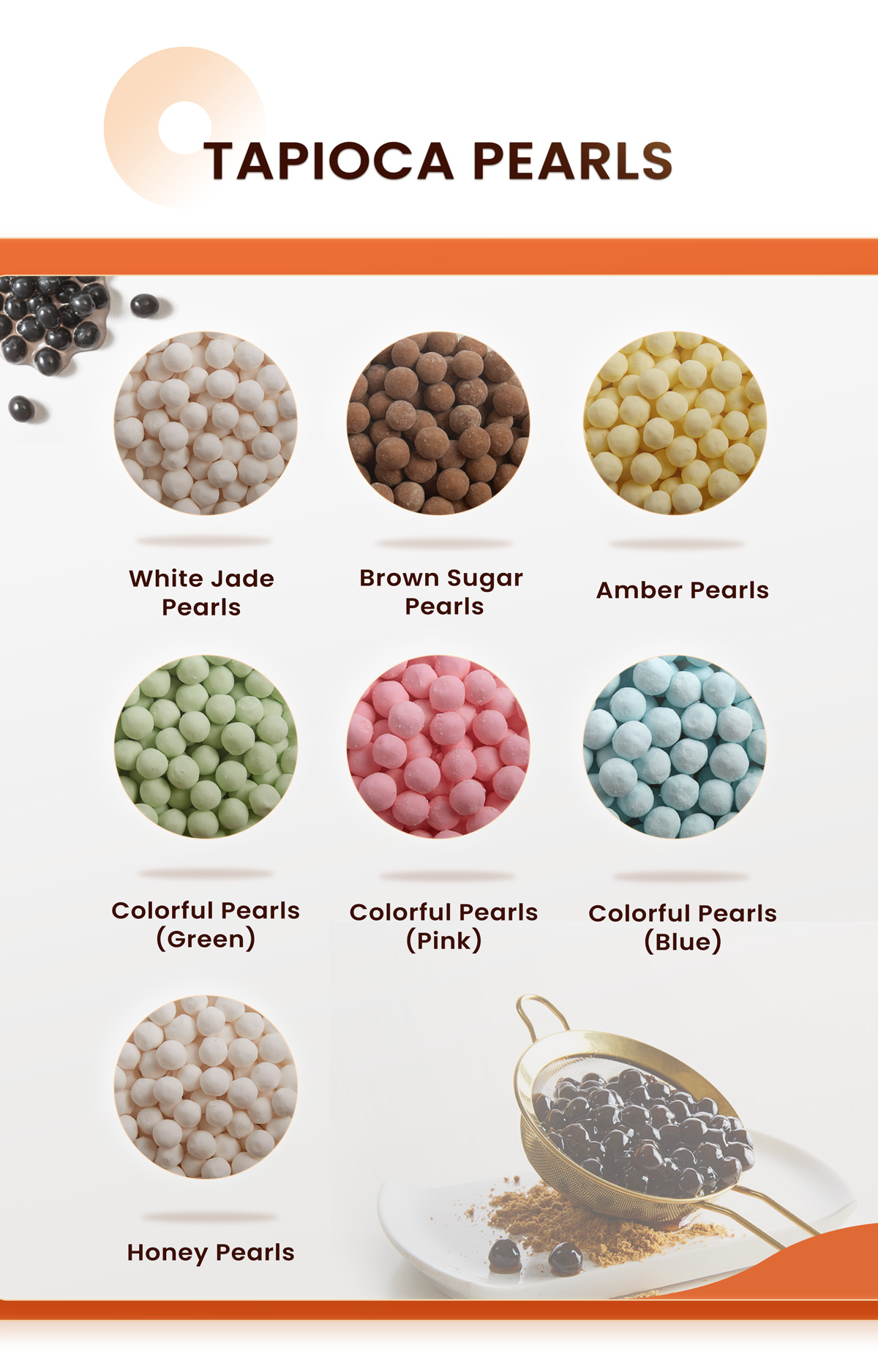 | Tapioca Pearl Flavor | White jade/brown sugar/amber/colorful (green/pink/blue)/honey |