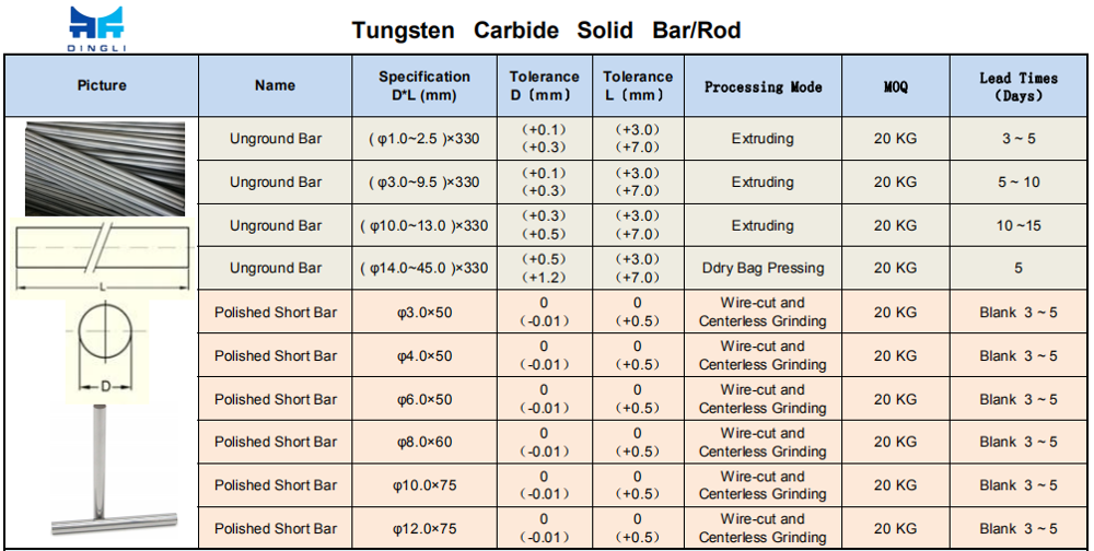 | brand: | Dingli | product name: | Tungsten Carbide Ground Rod |
