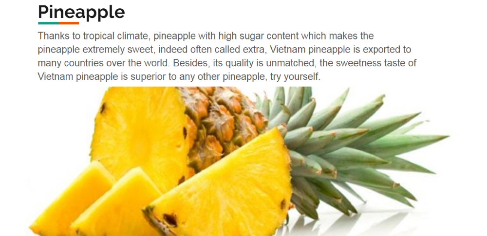 | place of origin; place of origin: | Vietnam | product name: | fruit delicious fresh pineapple |
