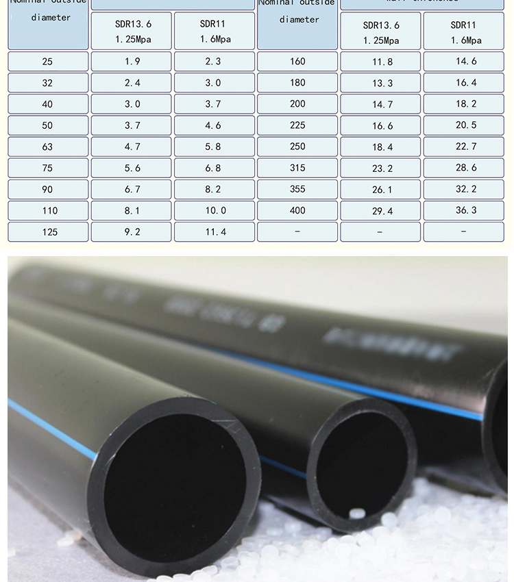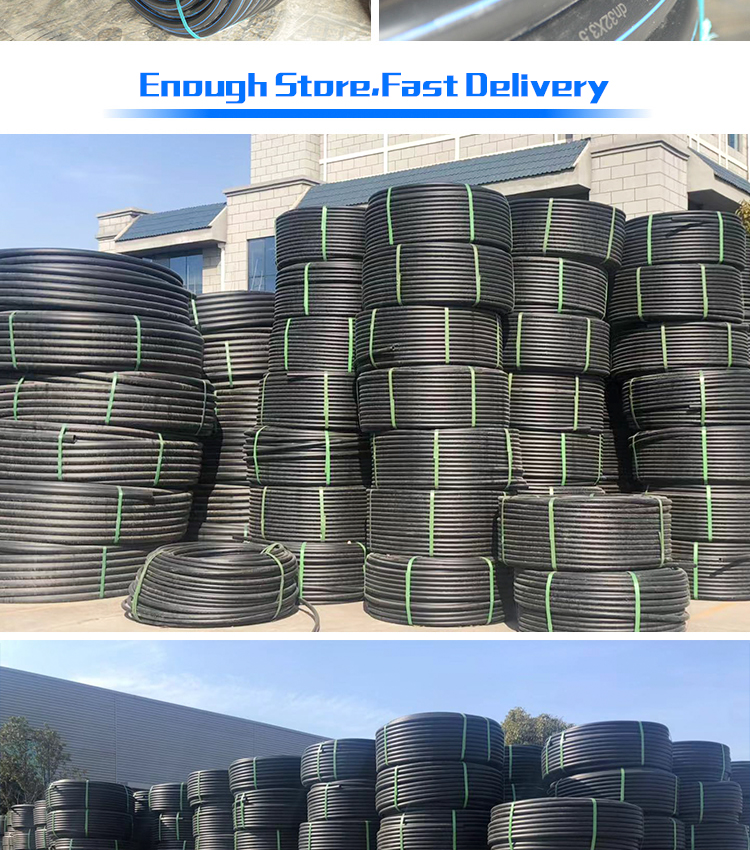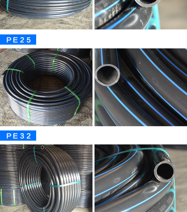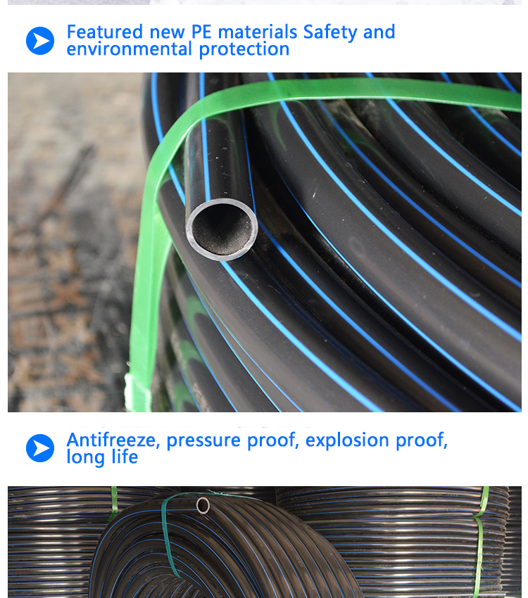 9. Polyethylene water pipes are black, black with blue stripes, blue, etc.