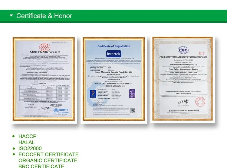 Hazard Analysis Control Point Muslim ISO22000 green food Ecological certificate organic certificate BRC certificate |