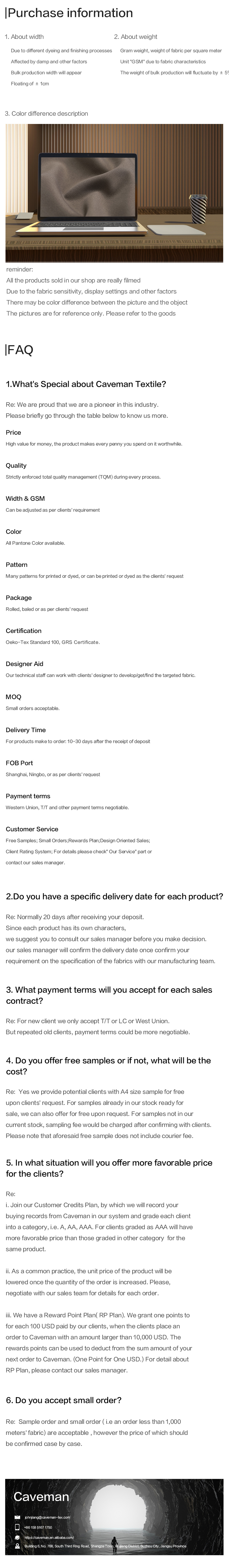 use: Skirts, shirts, robes, sarees, headscarves, scarves, etc., home textiles, uniforms, linings, pajamas, sportswear, skirts, shirts, robes, sarees, headscarves sample: free sample pattern: flat dyeing model: XFZS-001 type: D Certification: GRS/OEKO-TEX Standard 100 port: Shanghai Port, Ningbo...... -