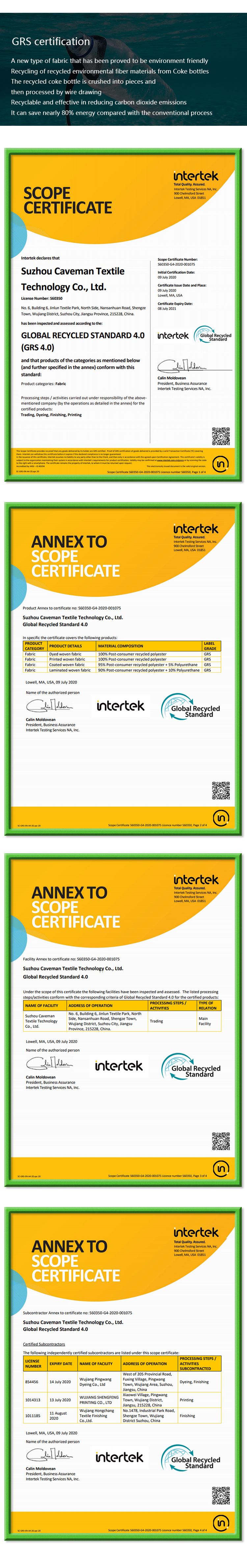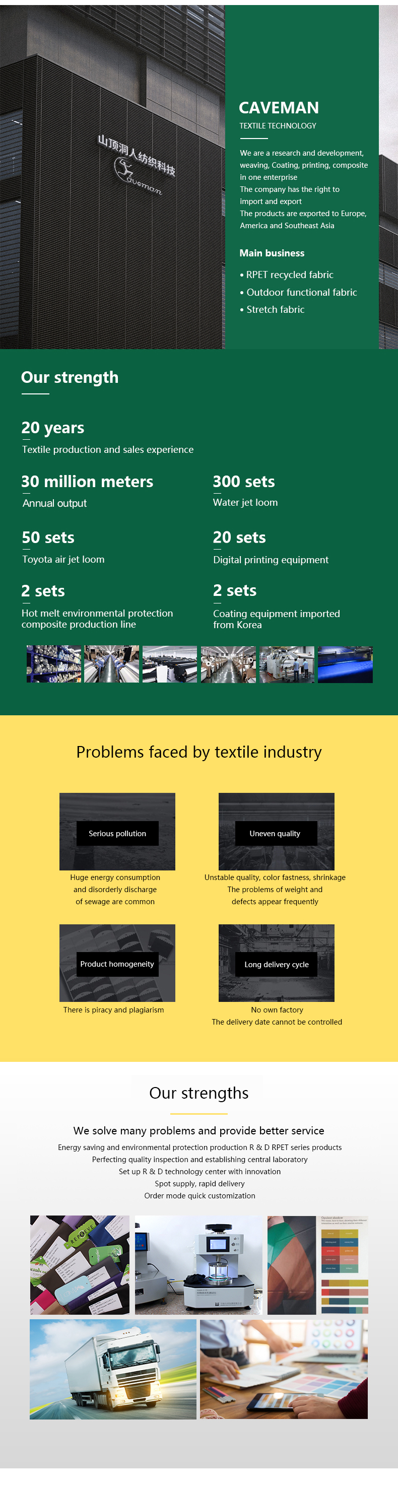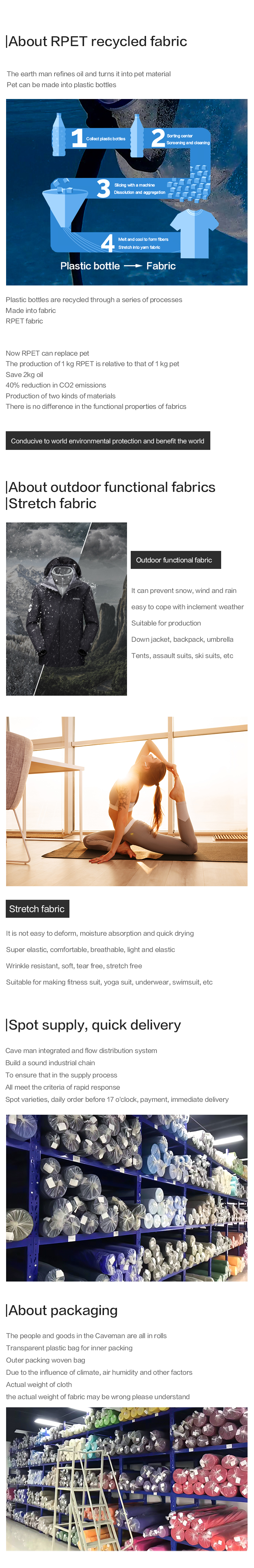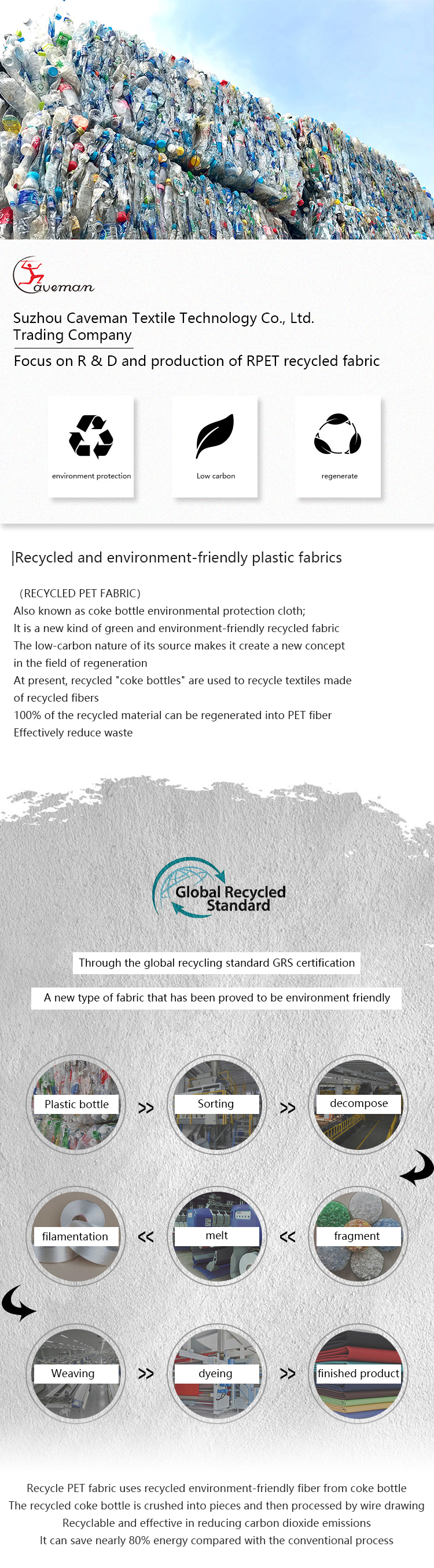 Custom 100% RPET Recycled Pet Fabric Repreve Manufacturer Caveman Textile Fabric