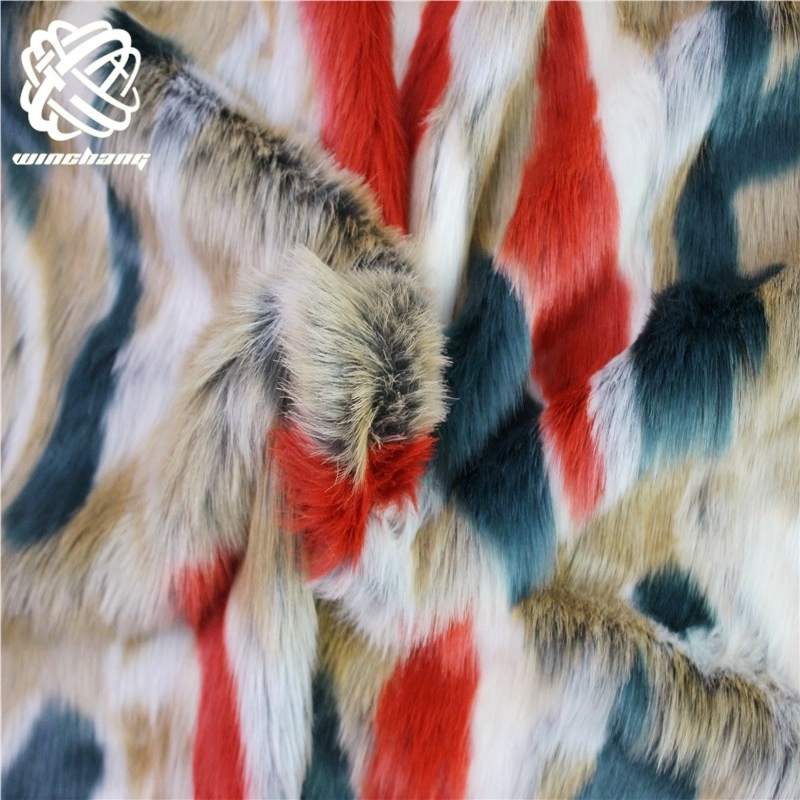 Keqiao Factory Lowest Wholesale Price By Yard Long Hair Faux Fur Fabric Jacquard Mixed Color Design Luxury Faux Fur Fabric