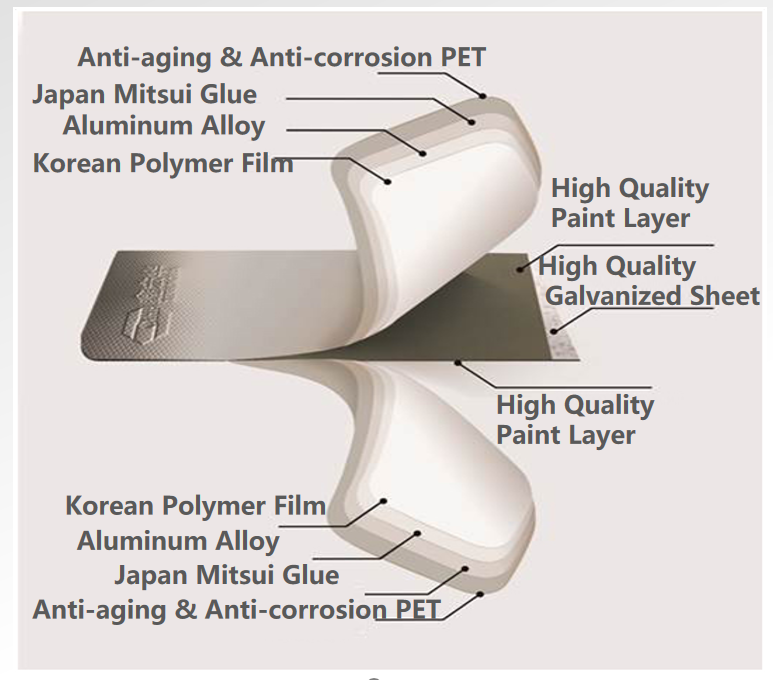 Layer diagram of XHH nano-steel-aluminum composite board: