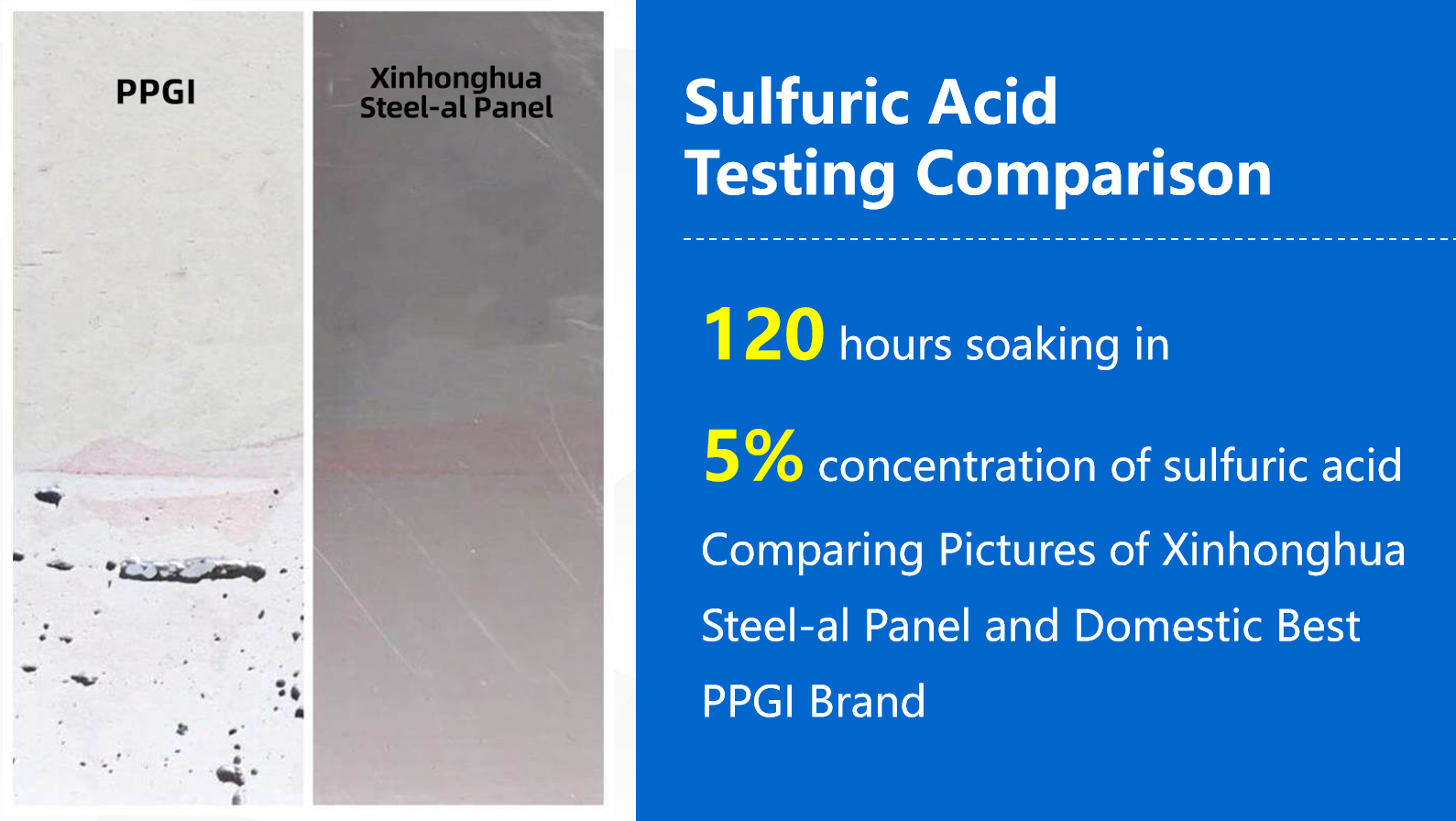 Higher anti-corrosion performance:Sulfuric acid test compared to PPGI