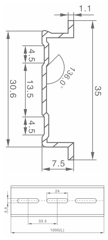 Cabinet Panel Aluminum or Steel TH35-7.5 C45 Slotted Aluminum Mounting