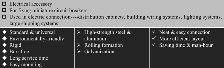 surface: Smooth quality: high quality type: Light Rail size: 35mm Whether alloy: non-alloy standard: National standard payment terms: L/C, Western Union, D/P, D/A, T/T Minimum order quantity: 50 Bolt hole diameter: National standard port: Ningbo tolerant: ±1% product name: DIN rail application: MCB.... -