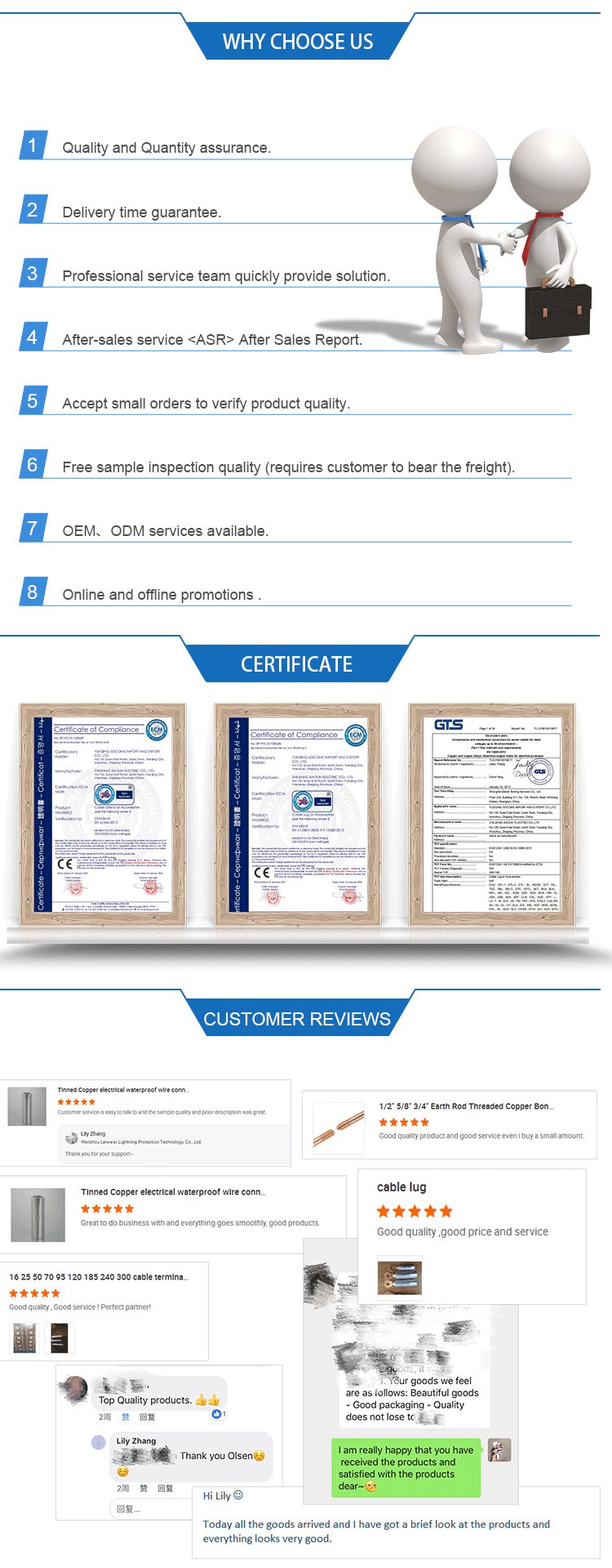 1. Selected raw materials, using pure copper 4. Long service life 5. Fast Shipping |
