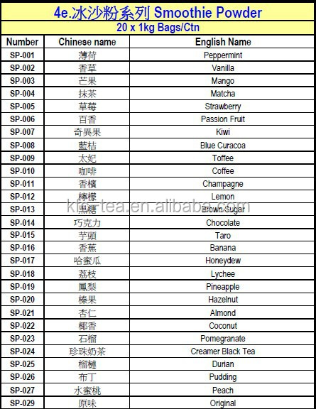 Customized label Sweet Taiwan made Vanilla smoothies fruit powder.
