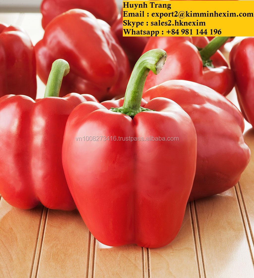 Dimensions (cm): 8 WeChat/Viber: +84984418844 maturity: 100% brand: GIMEX Vietnam Supply capacity: 100 tons per month model: bell pepper pack: 5/10 kg carton Shelf life: 6 weeks payment terms: L/C, Western Union, T/T, MoneyGram, PayPal delivery time: Within 7-10 days color: All colors smell: Sweet..... -