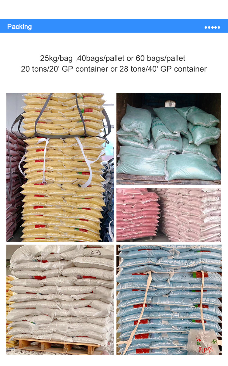 size: 1-4mm, 4-6mm payment terms: L/C, Western Union, D/P, D/A, T/T, MoneyGram Polymer content (%): -% pack: 25 kg/bag, 40 bags/pallet, 20 tons/20 feet container Certification: SGS,Labosport,REACH Package preview: Shipping port: Guangzhou, Shenzhen delivery time: 15 days Packaging details: Bag...... -