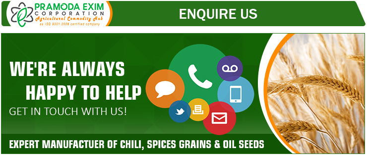 Pramoda Import & Export Corporationis one of the leading Manufacturers, Suppliers and Exporters of Indian Spices and Agricultural Products in Andhra Pradesh. we are oneISO 9001:2008 CertificationExporting companies supply the best varieties of Chili Peppers, Spices, Grains, Oilseeds and Cotton worldwide.