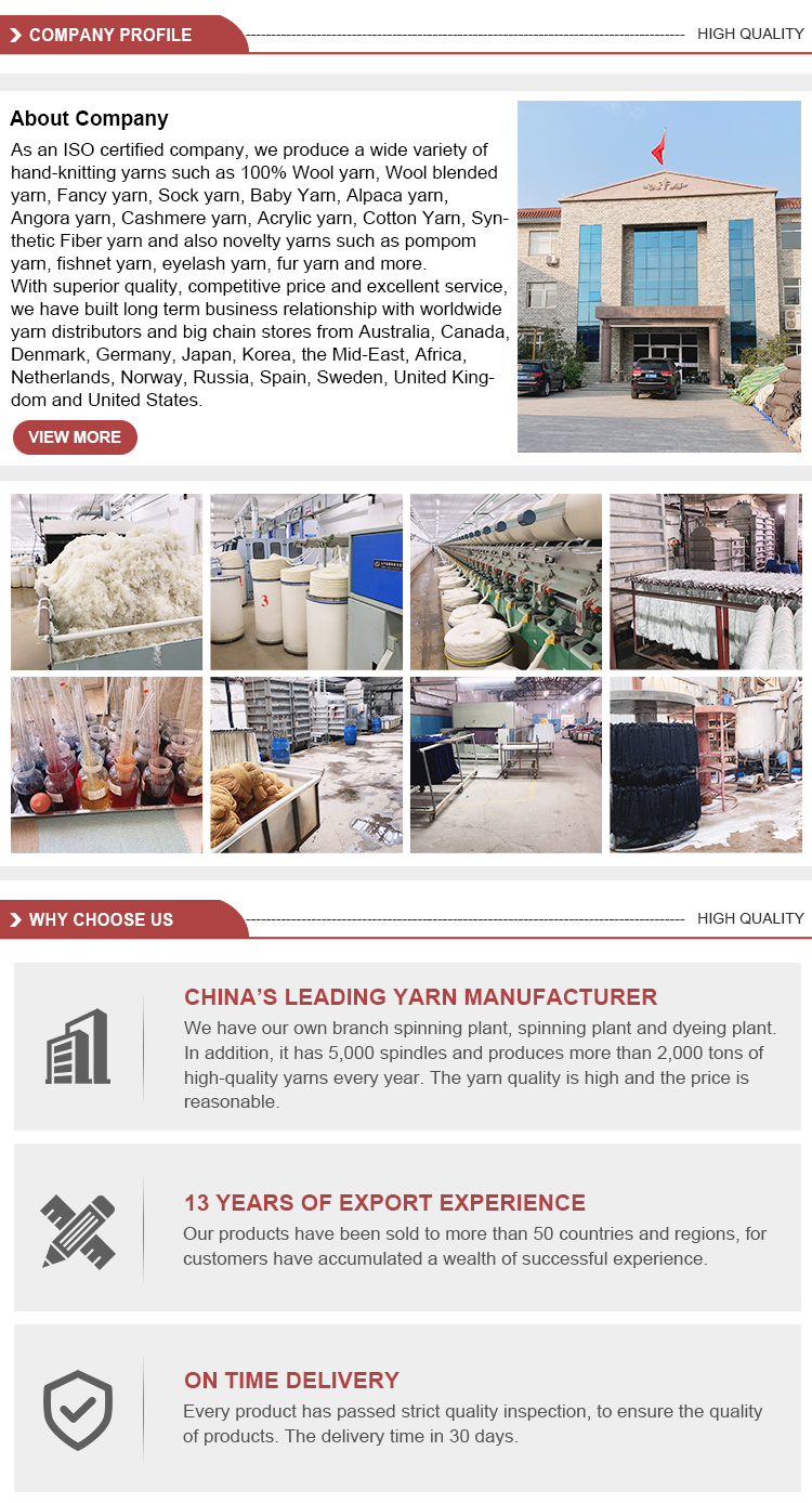brand: desert love Sales unit: single product strength: strong model: CY02 Yarn count: 24 three floors color: 32 colors Evenness: even Packaging Details: bags and cartons brand: desert love Origin: Hebei china pattern: dyeing sample: can provide usage: hats, scarves, sweaters Gross weight per...... -