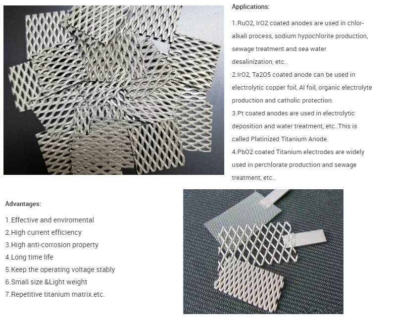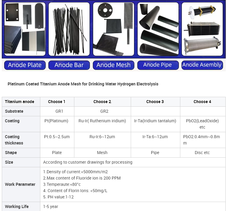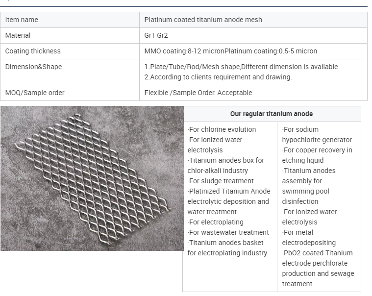 | application: | Electroplating, water electrolysis, water treatment | grade: | Gr1 titanium as base material |