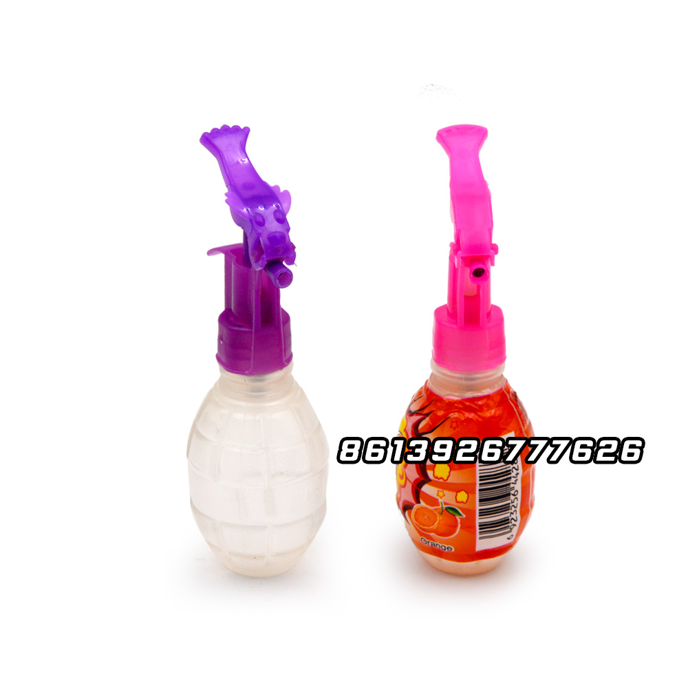 This is wholesale custom own brand sweet grenade spray candy, you can customize your favorite shape, fruit, we are factory, so we can give you cheaper price