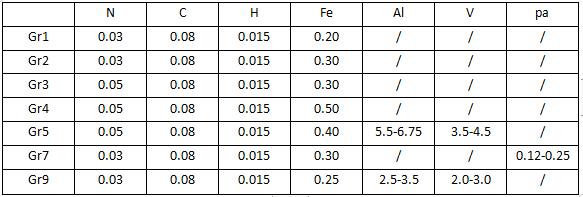 ASTM B348, ASME SB348, AMS 4928, ASTM F67, ASTM F136 |