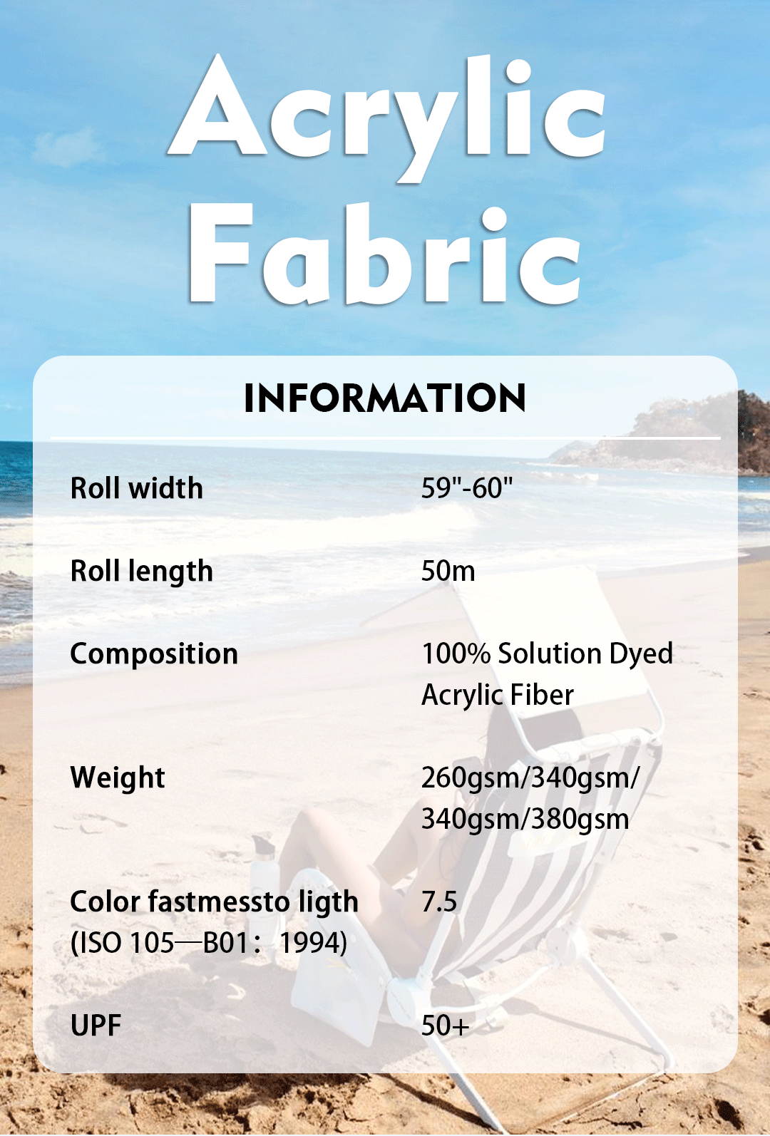 port: Qingdao Origin: Shandong Province, China type: outdoor fabric width: 57/58" Process: to weave feature: Wear-resistant, waterproof, UV-resistant, oil-resistant weight: 300GSM Material: 100% acrylic usage: outdoor Function: high color fastness Warranty: 5-10 years pattern: Dope dyeing...... -