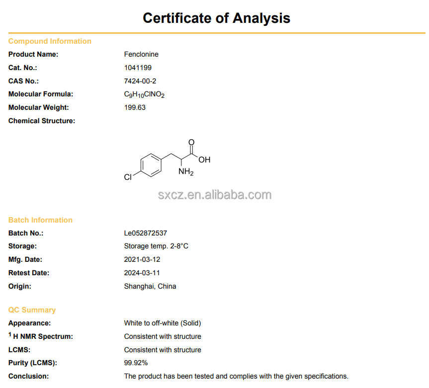 Achieve Chem-tech (Since 2008) Chemical Material CAS 7424-00-2 DL-4-Chlorophenylalanine Phenclonine