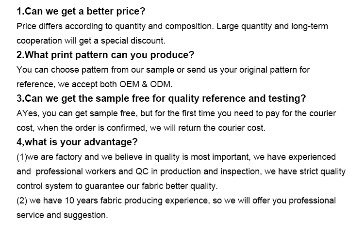 All fabrics displayed on Feimei/Yongshu are developed based on existing samples and batch orders. Welcome to call us for OEM service. Polyester, cotton, bamboo, recycled polyester, organic cotton, Sorona, Tencel, rayon, etc. All kinds of materials can be made according to our communication and...... -